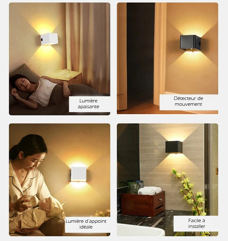 ☑️ Facile à installer : Sans aucune connexion électrique requise, vous pouvez connecter l'applique murale cube en quelques minutes.