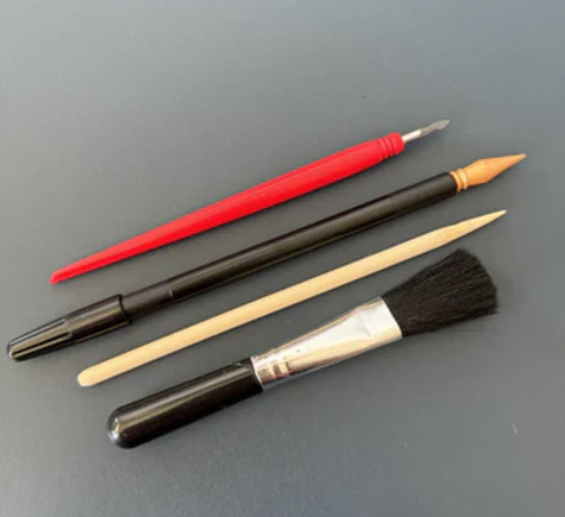 1 Instructions d'utilisation - Kit de 4 outils (stylet en bois, grattoir, pinceau, grattoir à double embout (ultra-fin et fin))