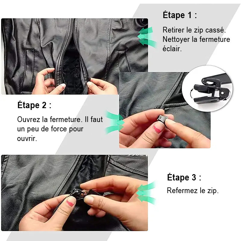 C'est le sauveur de vos vêtements et accessoires ! Fini les fermetures éclair qui lâchent au mauvais moment, les curseurs cassés et les frustrations vestimentaires. Maintenant vous avez la solution instantanée et universelle pour réparer toutes vos fermetures éclair en quelques secondes.