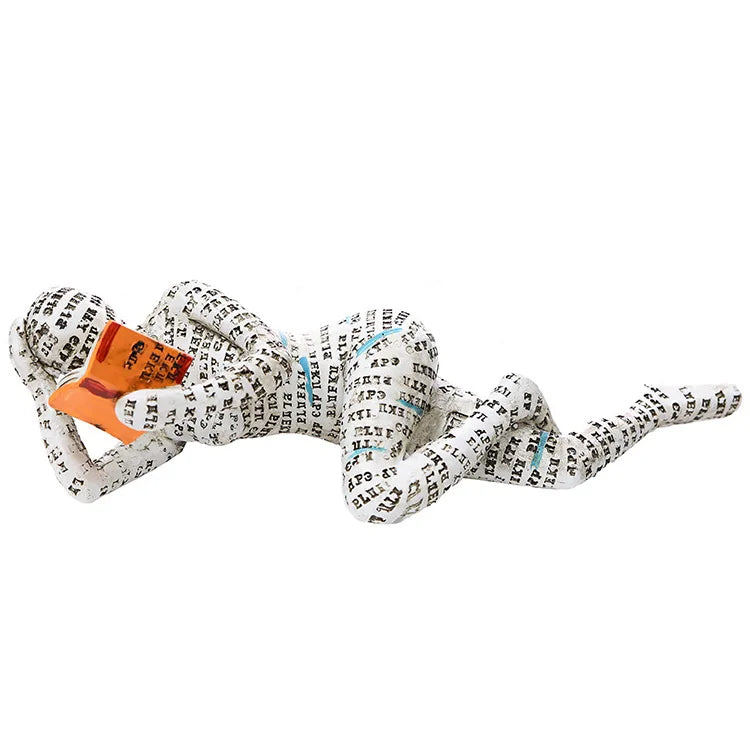 Ces statuettes en résine, représentant des personnages absorbés dans la lecture, capturent l'essence de la réflexion et de l'art contemporain. Avec leur design unique recouvert de texte imprimé, elles constituent un véritable hommage à l'amour des livres et de la créativité.